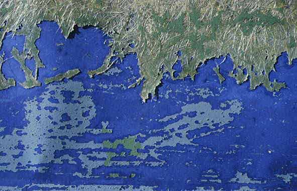 Paint flaking on a fibreglass boat hull, Hania harbour